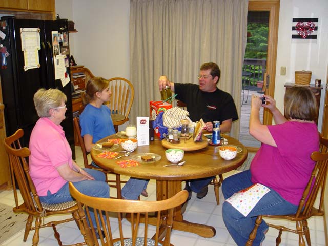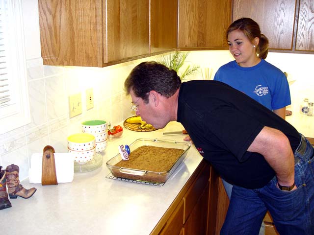 June 17, 2013 Hello again from the ranch! I haven't been at the keyboard for a while, so let's try and catch up on a few things. The big news is that Rick turned a milestone birthday on May 31st! Yep, the big 5-0! We started celebrating on the day by making him work a Hunter Education class that evening. (As an aside, I don't know how Rick got to be 50, as Little Heifer and I surely ain't old enough to have a kid that age!) Since our Hunter Ed volunteers always provide some sort of snack for students and parents at break time in each of our class sessions, an extra treat was in order. Christi supplemented our regular snack time by bringing in an ample supply of key lime pie and cheesecake with strawberry topping. Fortunately the students had all completed and passed the written test before break time, so their sugar high didn't interfere with that. The birthday celebration continued on Sunday, June 2nd, with a trip to Coeur d'Alene, Idaho for an early dinner at Texas Roadhouse. That was followed by ice cream and bar cookies at our house that evening. Chocolate Chip bar cookies were an excellent break from the traditional birthday cake, and were enjoyed by all.