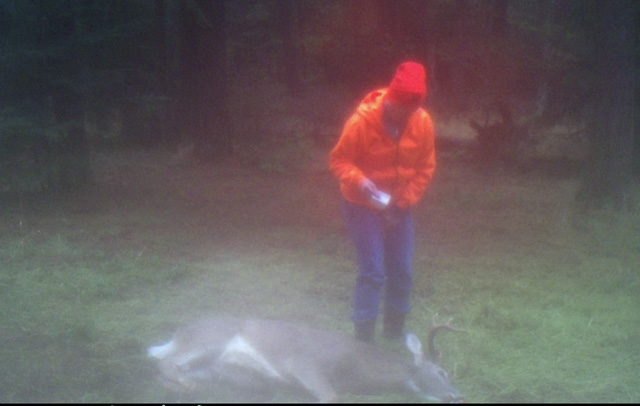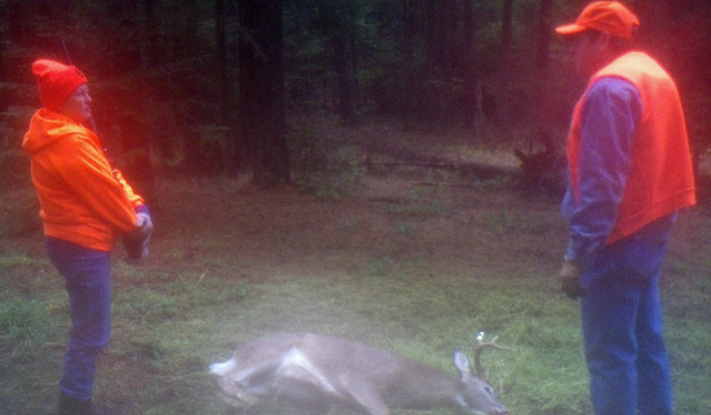 ![]() Buck down! ![]() Poke the eye with a stick to make sure it's dead, just like we teach in Hunter Education class. ![]() Notch and attach the transport tag. ![]() Help has arrived!