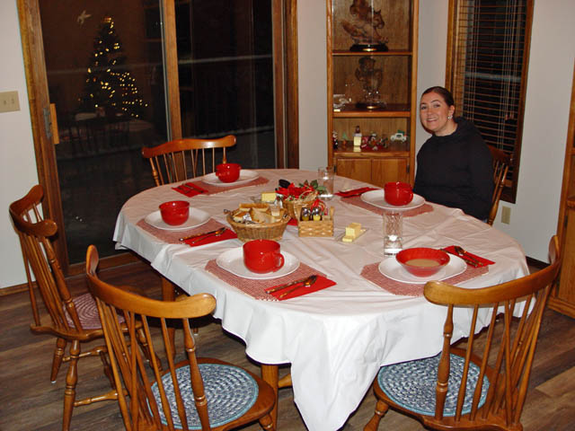 ![]() The bisque is in the bowls and Jennifer is ready to dig in.