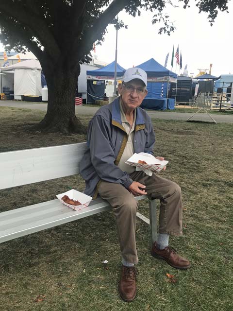 | November 10, 2018 Yes, I'm getting a late start on this newsletter. (AGAIN) We've had two birthdays, some rifle shooting in preparation for deer season, visiting the Spokane Interstate Fair, Rick's buck, and other sundry items. So let's get started. Ann and I visited the Fair on September 11th and were sorely disappointed, although there was one special highlight. As we approached the ticket booth with wallet in hand, two ladies came running up behind us, one of them hollering, "Wait, wait, wait! I have a bunch of extra coupons that will get you in free!" Sure enough, she quickly tore out two tickets from a booklet, and handed them over. We thanked the lady profusely! The young man behind the ticket counter commented, "Go for it," reached for the coupons and handed us our passes. One thing we didn't understand though. With all those ticket coupons of various colors, why did that nice lady automatically choose the red one that had 'Senior' printed on them? I guess life is full of things we can't understand. Turned out that incident, along with the deep fried bacon and corn on the cob, were about all that didn't disappoint. The deep fried bacon was OK but not spectacular. This booth had 'battered and deep fried' dang near anything you could think of. Candy bars, various veggies, and even deep fried Philly Cheese Steaks in addition to the bacon. Talk about an overdose of grease! ![]() Mouthful of battered and deep fried bacon!