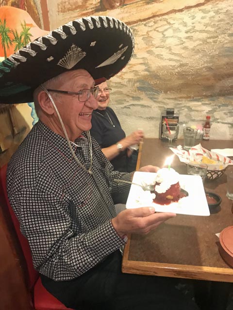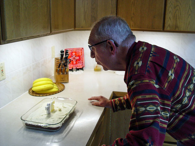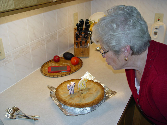 On October 30th, which is the real birthday, we shared pie and ice cream here at home to wind up the celebrating. ![]() This pie looks like cake to me. (Again the numbers appear to be reversed)