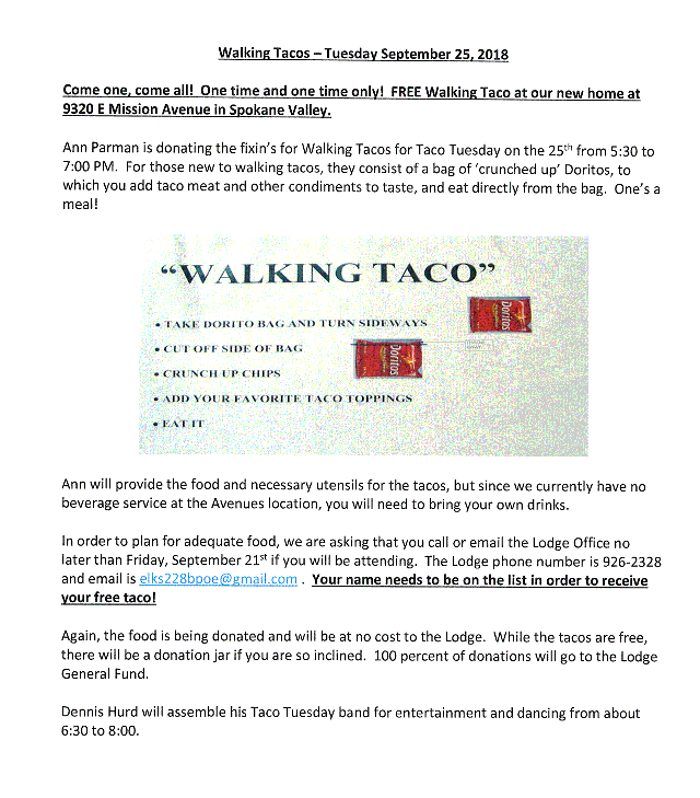 Mercy, September was a busy month! Just four days after our trip to Pullman, Ann put together a 'Walking Taco' night at the Elks Lodge. Here is the announcement in the Lodge Bulletin: ![]() If you haven't tried walking tacos, you should. (perhaps another recipe for Ann's Corner?) There were some difficulties getting this show on the road however. About the time we were ready to pre-heat the food at home, the power went out! No electricity: no stove, no microwave, and no crock pots. We quickly packed up our stuff and headed for the Lodge to do the prep work. Another problem! Not having used the kitchen range in our new Lodge facility, we found that it has a 'lockout' feature that avoids inadvertent heating of the stove top burners. A phone call to someone who knew, 'unlocked' the stove so we could proceed. On with the show! In addition to the tacos, the festivities included two piņatas, one for kids and one for adults. The kid's prizes were mostly candy. Gotta get that sugar high goin' for the young ones! Adult's prizes included a half dozen or so 'miniatures' of various adult beverages. All prizes included a strip of paper with one of the 'Hillbilly Wisdom' sayings or quotes you have seen for many years at the end of each of these newsletters. The big prize for the evening was a drawing for a nice, crisp $100 bill! Everyone who was on the reservation list received a ticket for this drawing when they arrived. The winner was Lodge member, Sharon Garrett. In all there were eighty some attendees, the largest gathering for a Lodge function in a long time! A big THANK YOU to Little Heifer, as she did most of the work and donated the food for this function! Unfortunately we were so busy keeping everything moving and on schedule, we didn't take any photos, so you'll have to use your imagination. With upcoming hunting seasons it was time to sight in the rifles we would be using for deer. I undertook the chore on October 9th. Ann elected her Savage Lady Hunter in .308 Winchester, me my Sako M85 in .30-06, and Rick chose the Ruger M77 MKII in .300 Win Mag. Note, I said THE Ruger instead of HIS Ruger. In spite of Rick's repeated attempts to claim the Ruger as HIS rifle over the years, I'ts still mine! ![]() Ann's Savage .308
